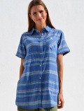 【肌ざわり抜群のWガーゼシャツ♪】 肌触りのいいガーゼ素材のシャツ。 表が多色ボーダー柄、裏は無地の2枚仕立て。 これまでにない変わりボーダーが爽やかなカラーとマッチしておすすめの1枚です!
