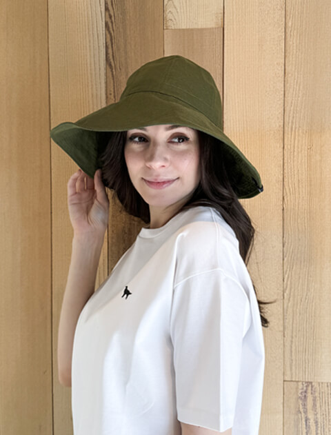 お散歩には嬉しい紫外線から守るツバ広タイプ。お散歩におすすめで女性らしさもあるキャペリンハット型です。リネン素材で吸湿速乾性もあり通気性もあるので夏のお散歩にもおすすめのハットです。