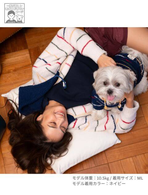 ぬくもり感たっぷりのもこもこ素材で、秋冬のお散歩もぽかぽか快適♪カラフルなボーダー柄と配色フードが、カジュアル可愛いデザイン。やわらかく伸びの良い生地で、動きやすさも◎シンプルながらも存在感のある1枚は、毎日のコーデに大活躍です。